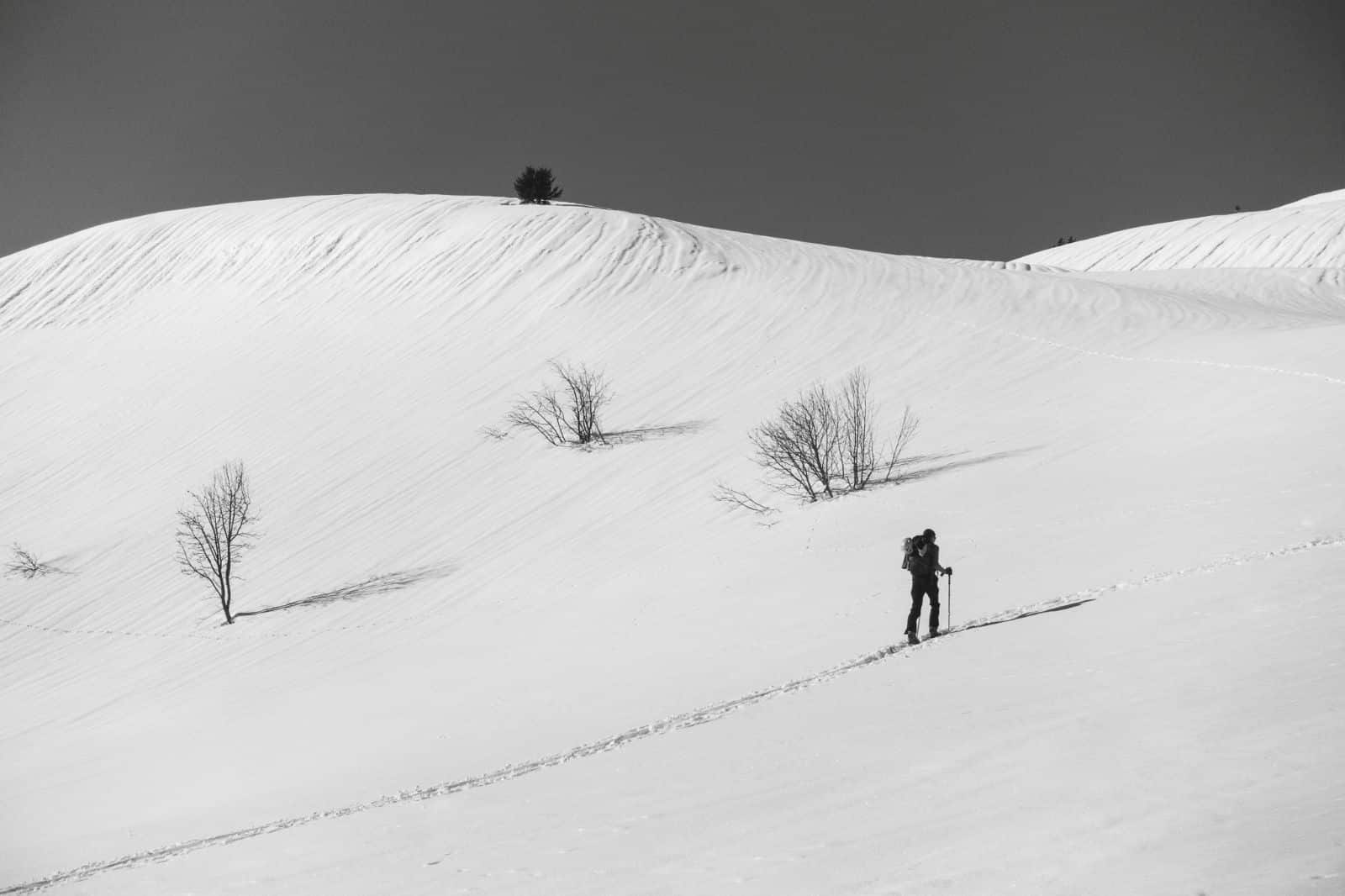 Ne prenez pas votre équipement de ski de piste, vous allez transpirer à la montée et une fois mouillé vous aurez froid. Privilégiez le principe des « couches », qu’on peut ajouter ou enlever en fonction du degré d’effort physique, et ainsi toujours se sentir bien !